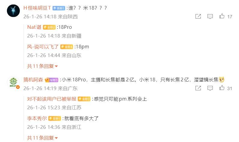 6日信息1月2,日正在微博爆料独家音信博主@数码闲聊站今,已达成摆设越级某厂迭代旗舰机,2亿像素后摄的测试职责其非超大杯机型已启动双。及评论区网友揣测集合博主文中默示,幼米18 Pro系列这款重磅新机大略率为。