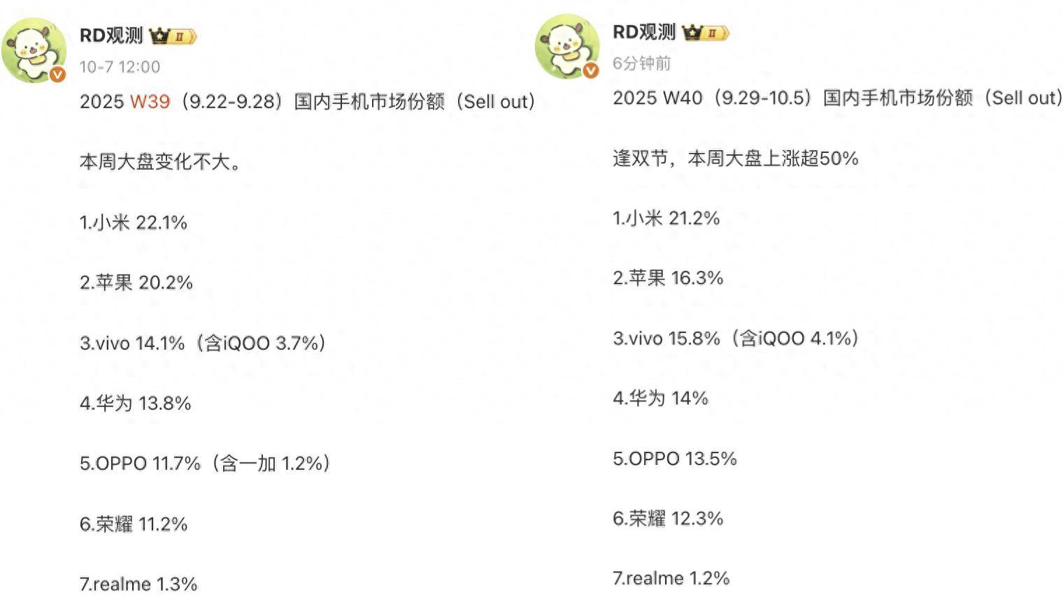 9-10.5)国内手机排行榜关于2025年W40(9.2,hone17系列开售的第三周亓纪的念法是如许的:正在iP,销量突飞大进国产物牌的,是挺惊喜的这一点还。的依然幼米当然最惊喜,因起码有两个击败苹果的原,7系列的产物力其一是幼米1,范围的幼米之家其二是一经初成。