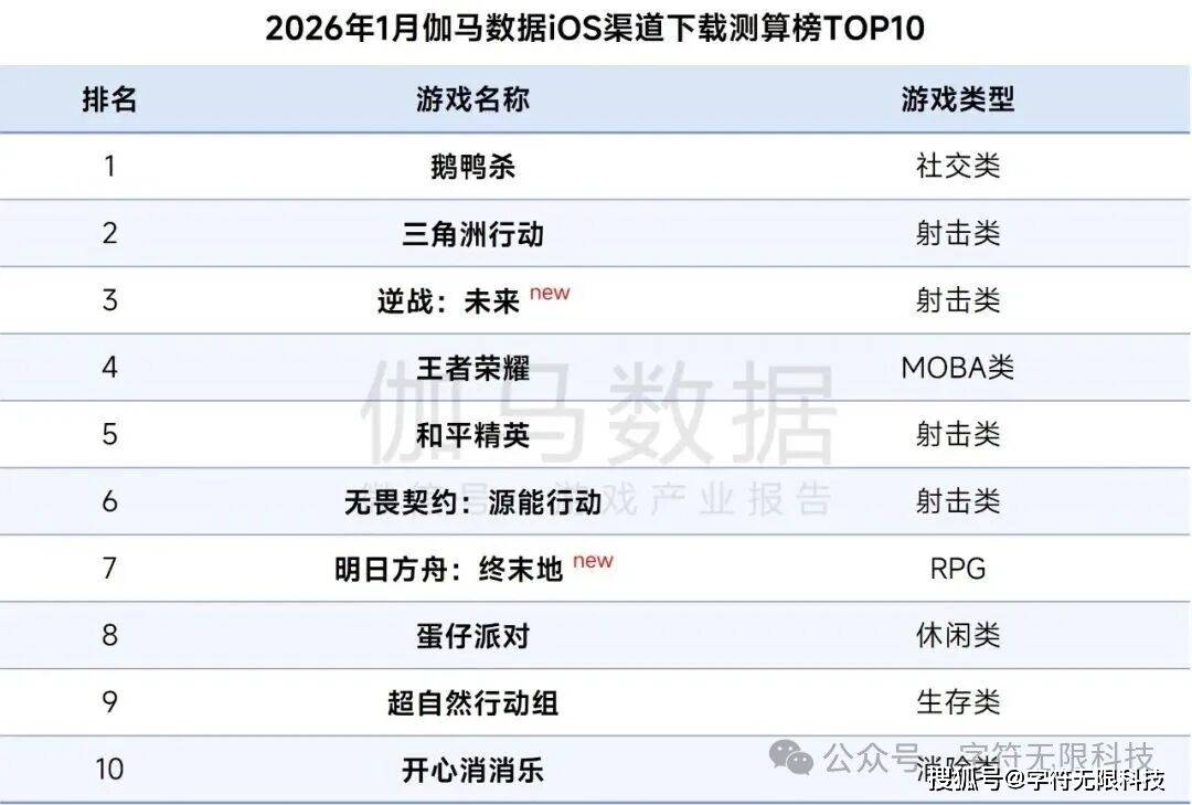S渠道下载测算榜TOP10中2026年1月伽马数据iO,交玩法和互动体验胜利登顶《鹅鸭杀》依据其特有的社,类游戏的连接热忱显示出玩家对社交。