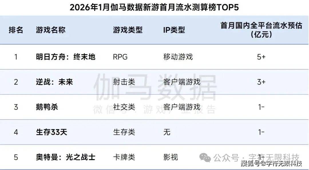 场产物流水伸长TOP10中2026年1月核心境表市,》位列榜首《决胜巅峰,P两款产物入榜“昭质方舟”I。