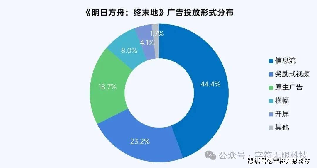 告白投放荟萃于正式上线当天《昭质方舟:终末地》游戏,Store游戏抢手榜TOP4游戏上线后最高进入App 。采用了音讯流告白阵势游戏正在告白投放上紧要,44.4%占比高达,过用户寻常浏览的音讯流来吸引潜正在玩家这阐明该游戏正在墟市引申中更方向于通。